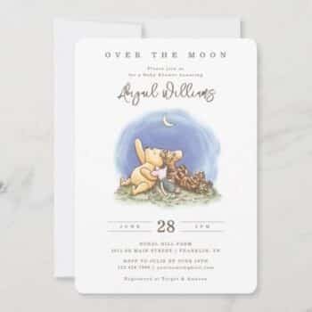 Classic Winnie The Pooh Over the Moon Baby Shower Invitation
