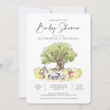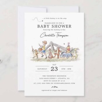 Classic Winnie the Pooh 100 Acre Wood Baby Shower Invitation