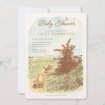 Vintage Winnie the Pooh 100 Acre Wood Baby Shower Invitation